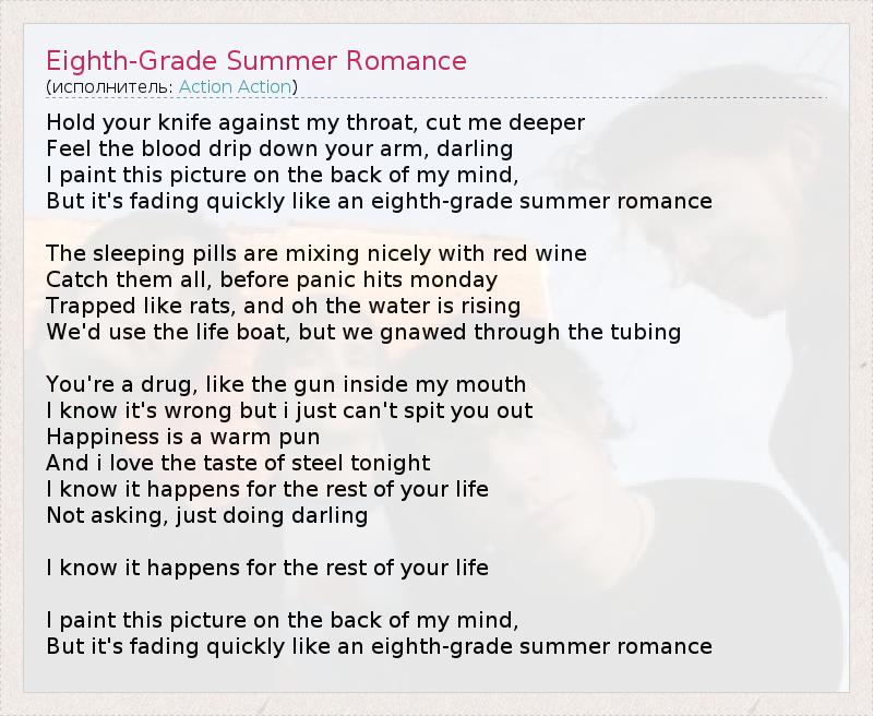 А как ты думаешь, о чем песня "Eighth-Grade Summer Romance" ?