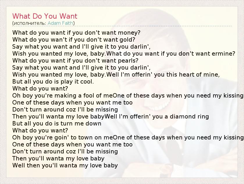 А как ты думаешь, о чем песня "What Do You Want" ?