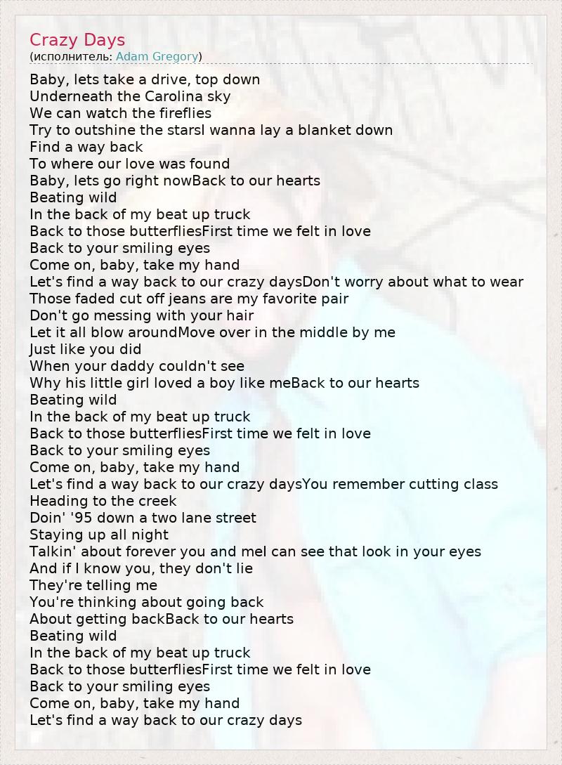 А как ты думаешь, о чем песня "Crazy Days" ?