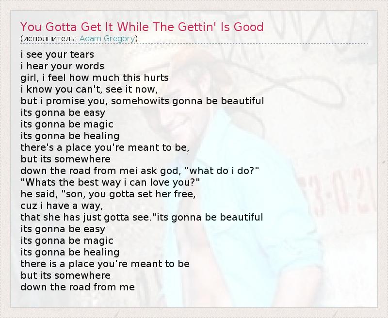 А как ты думаешь, о чем песня "You Gotta Get It While The Gettin' Is Good" ?