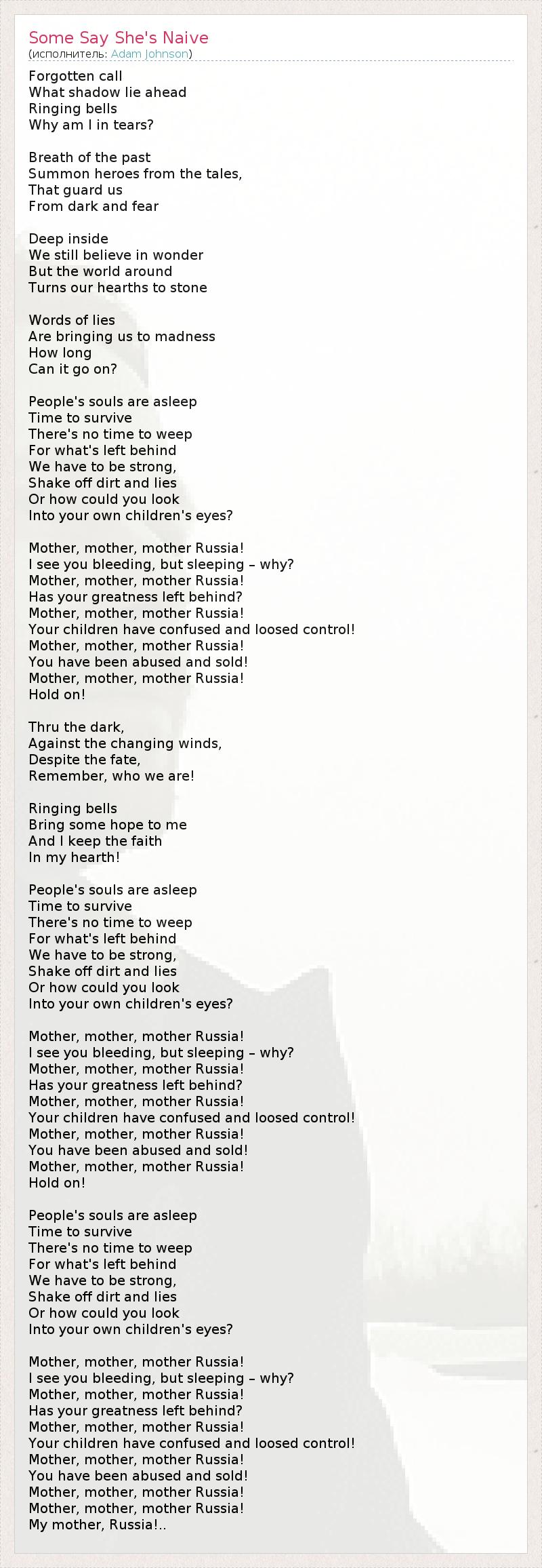 А как ты думаешь, о чем песня "Some Say She's Naive" ?