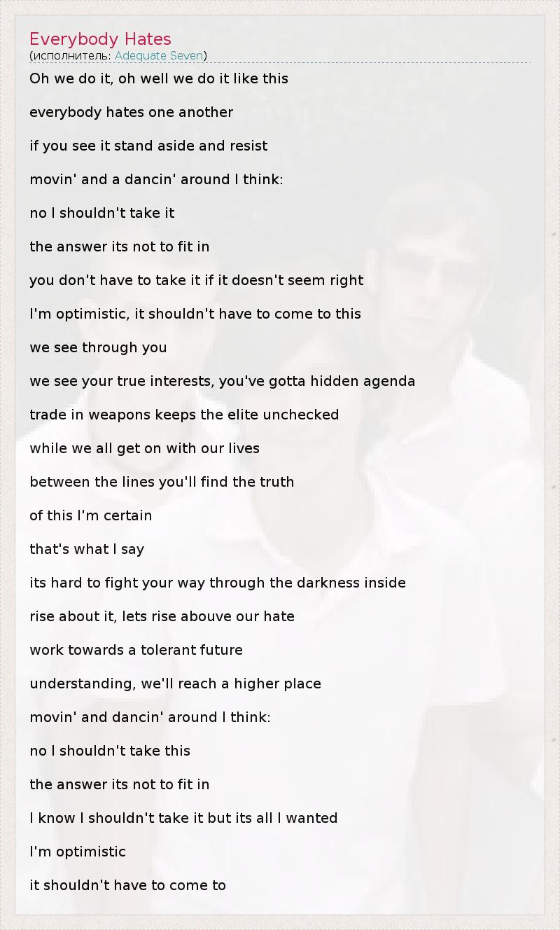 А как ты думаешь, о чем песня "Everybody Hates" ?