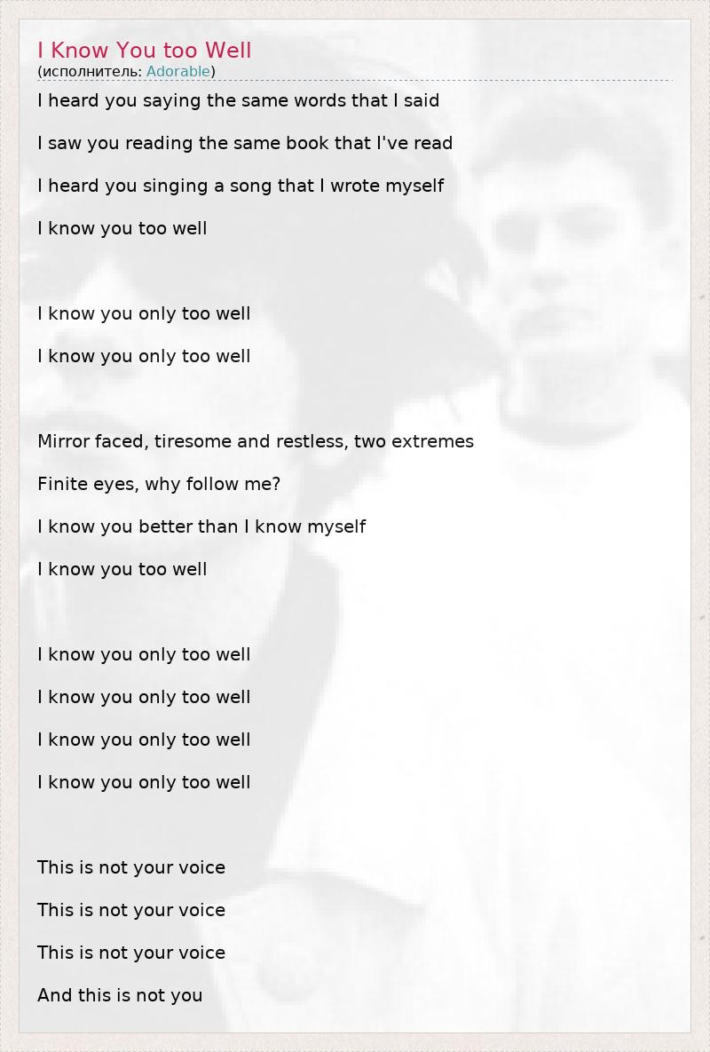 А как ты думаешь, о чем песня "I Know You too Well" ?