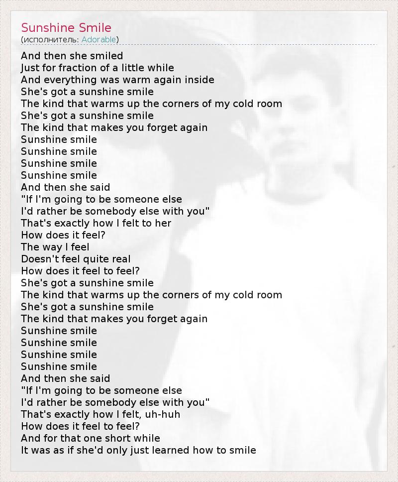 А как ты думаешь, о чем песня "Sunshine Smile" ?