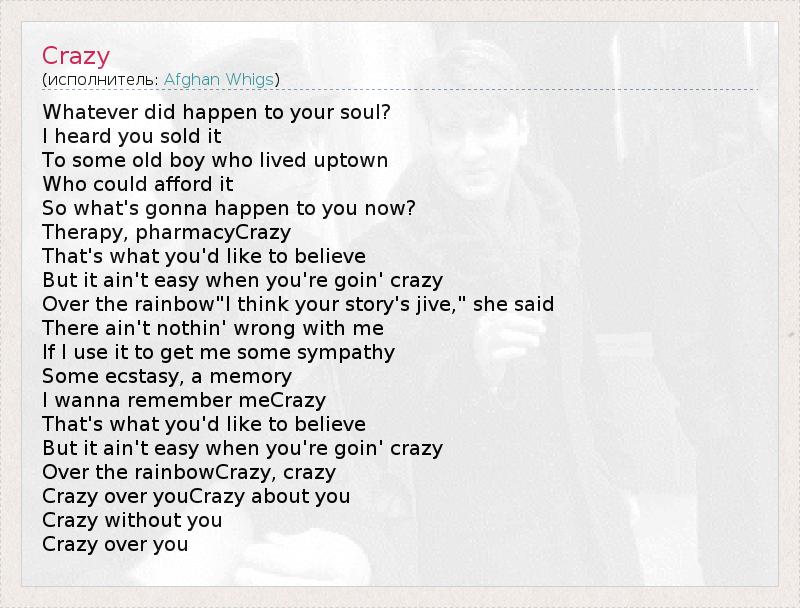 Это интересно:Afghan Whigs - американская альтернативная рок-группа. Образована в 1986 в Цинциннати (Огайо).Считается, что она принадлежит направлению гранж, но в ее музыке есть много традиционных течений: в альбоме «Uptown Avondale» присутствует много классических соул-мелодий, хотя в более раннем альбоме «Up In It» они исполняли роковые композиции в стиле кантри. Грег Далли (вокал, ритм-гитара), Рик Макколам... продолжение