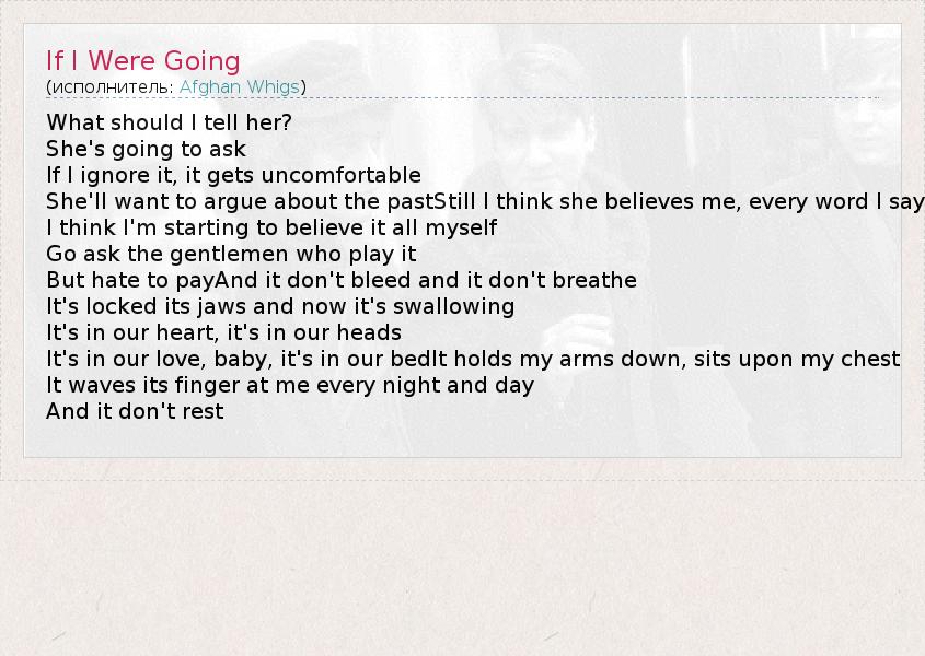 А как ты думаешь, о чем песня "If I Were Going" ?