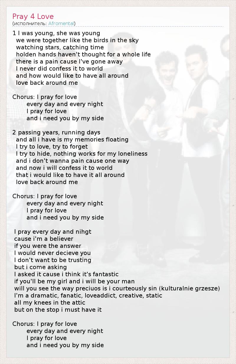Chorus: I pray for love
