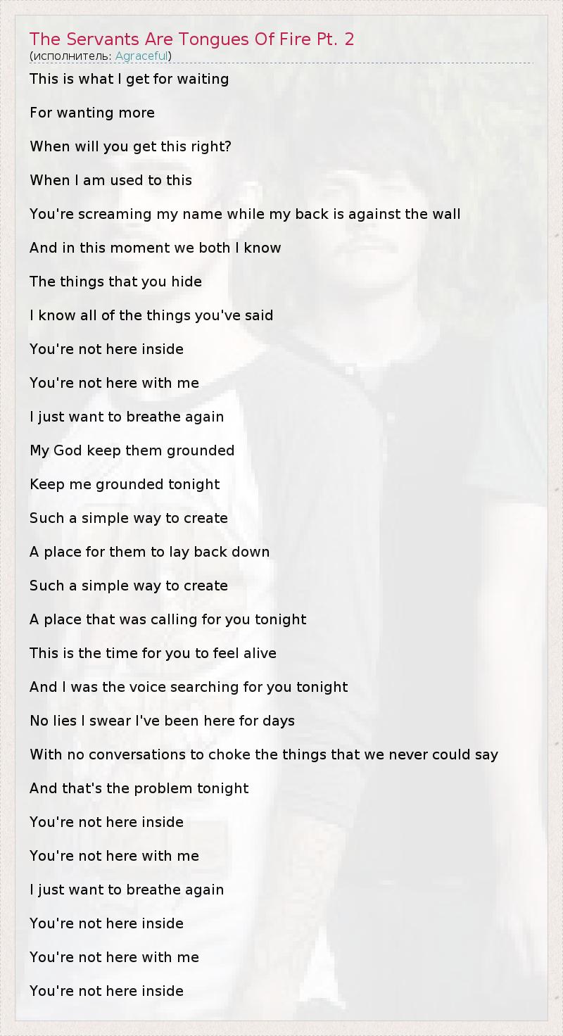 ГлавнаяИсполнителиAgracefulThe Servants Are Tongues Of Fire Pt. 2