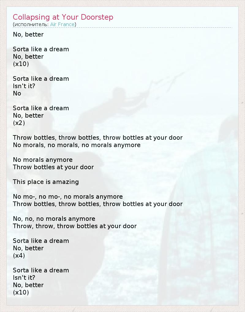 А как ты думаешь, о чем песня "Collapsing at Your Doorstep" ?