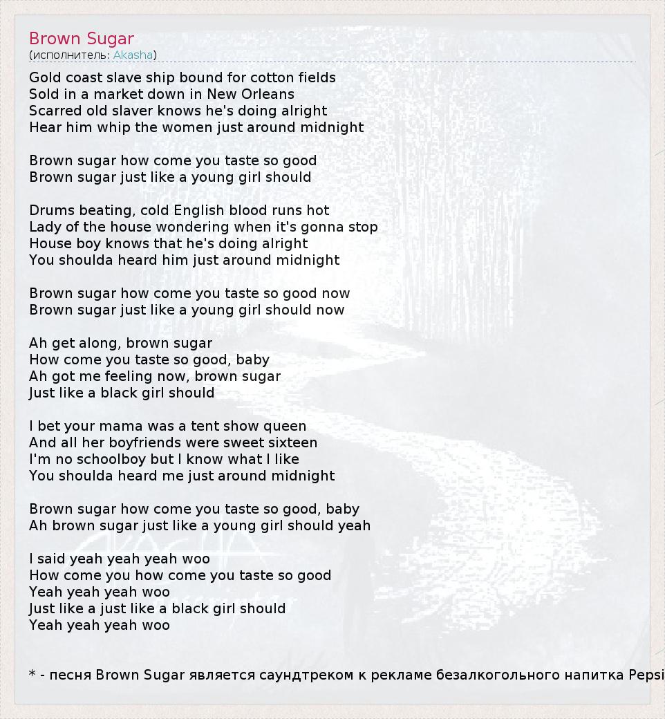 А как ты думаешь, о чем песня "Brown Sugar" ?