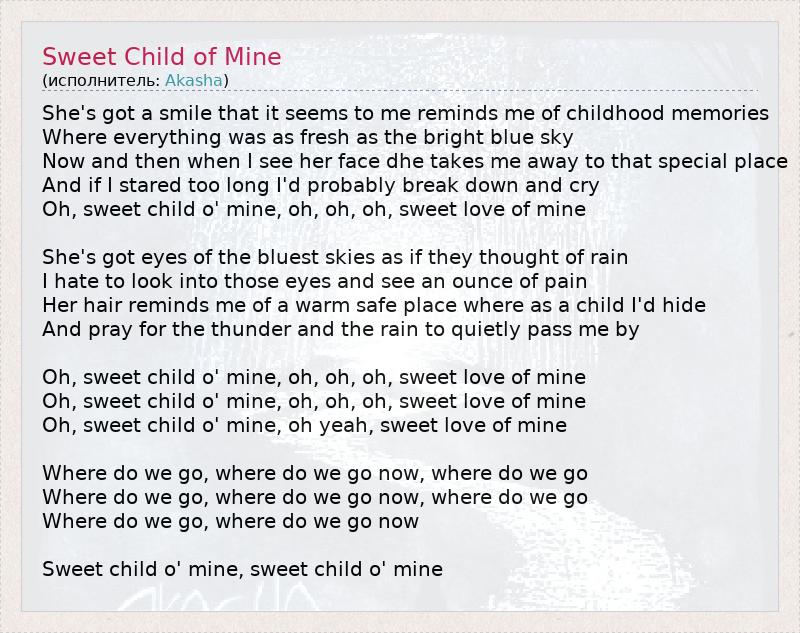 Oh, sweet child o' mine, oh yeah, sweet love of mine