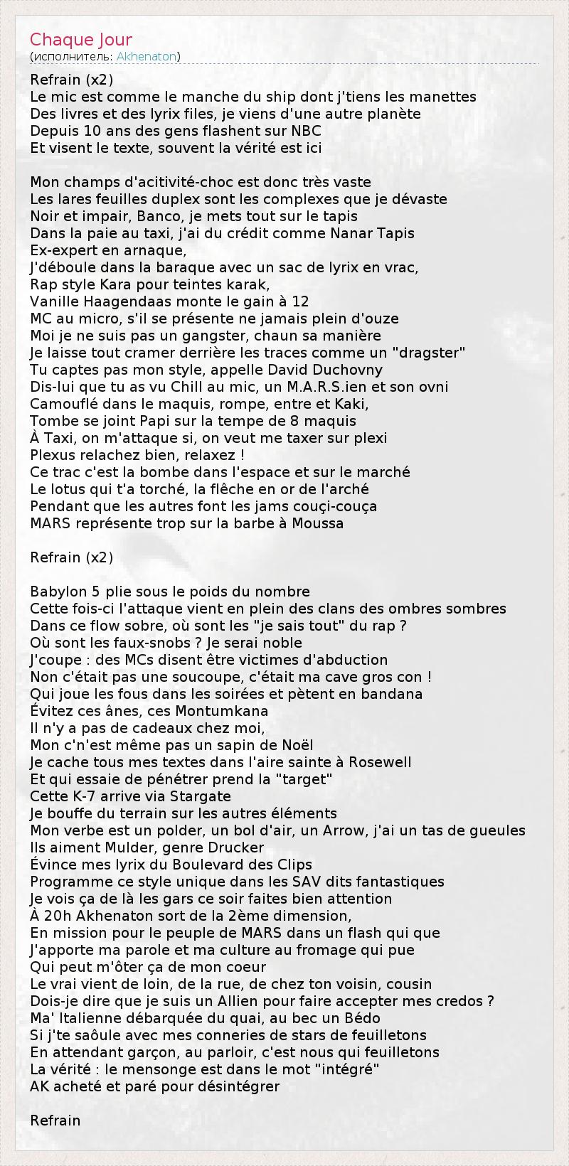 А как ты думаешь, о чем песня "Chaque Jour" ?