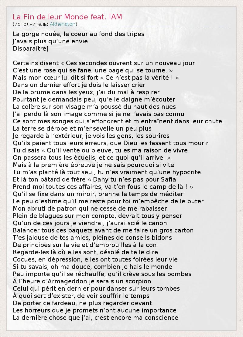 А как ты думаешь, о чем песня "La Fin de leur Monde feat. IAM" ?