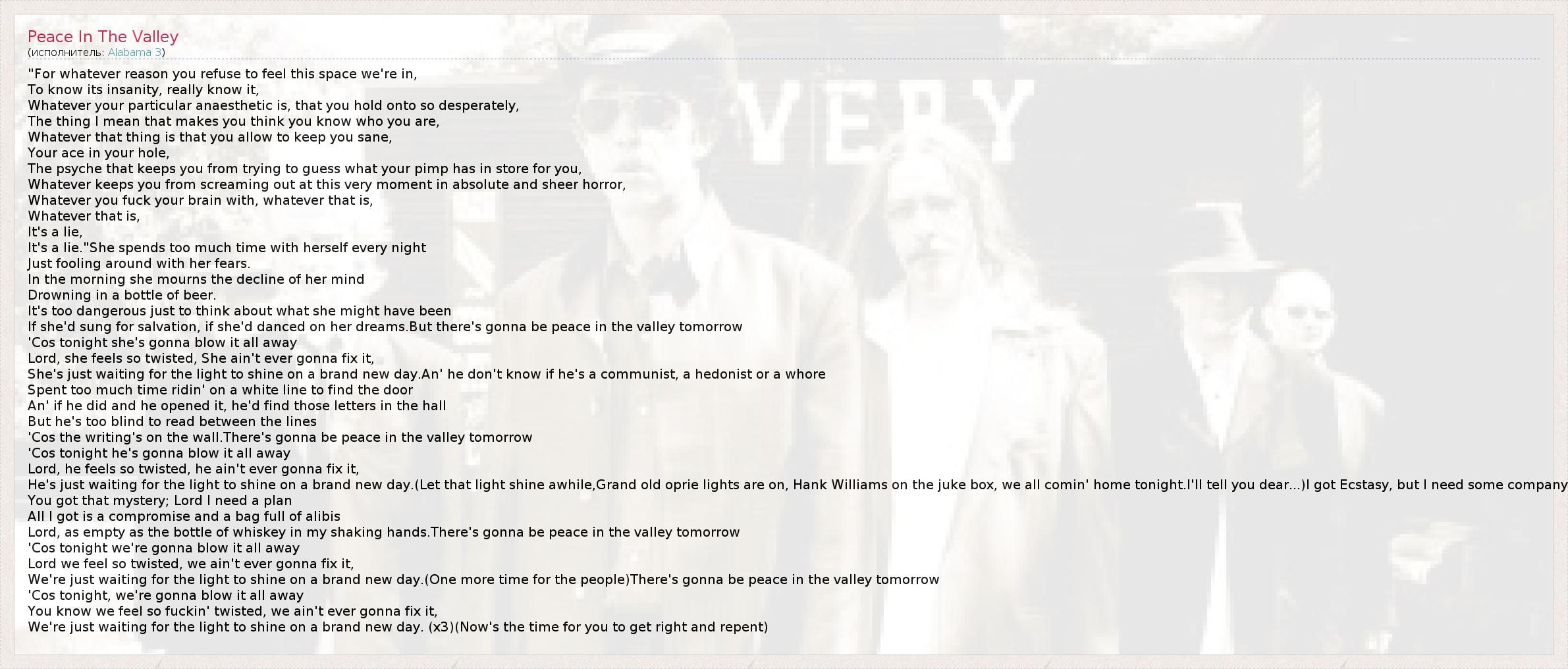 А как ты думаешь, о чем песня "Peace In The Valley" ?