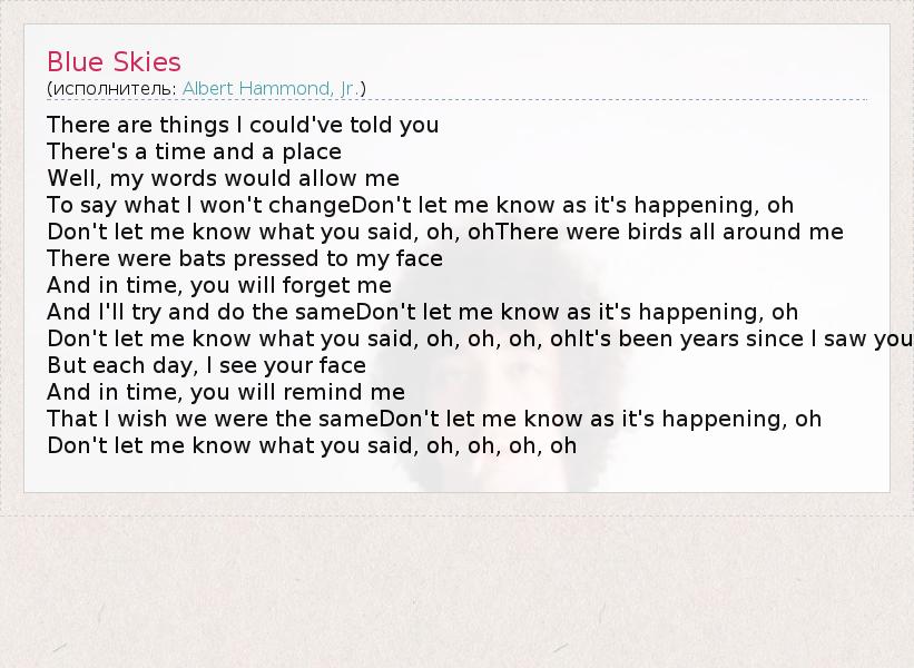 А как ты думаешь, о чем песня "Blue Skies" ?
