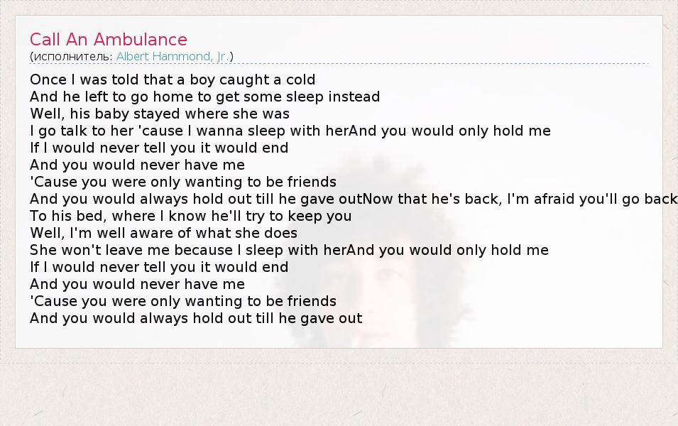 А как ты думаешь, о чем песня "Call An Ambulance" ?