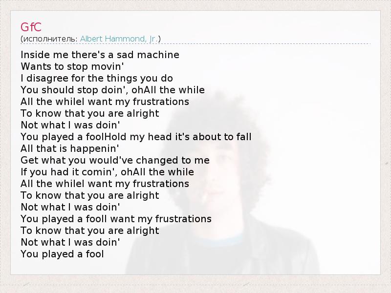 Это интересно:Альберт Хэммонд старший родился в Лондоне в далёком 1944 году - именно туда была эвакуирована его семья из Гибралтара в годы Второй Мировой. После войны, отец будущего гитариста The Strokes вновь вернулся на небольшой кусочек Британской земли близ Испании, начал заниматься музыкой, и лишь десять лет спустя уехал в США, где и познакомился с Клаудией Фернандес, аргентинкой с австрийско-перуанскими... продолжение