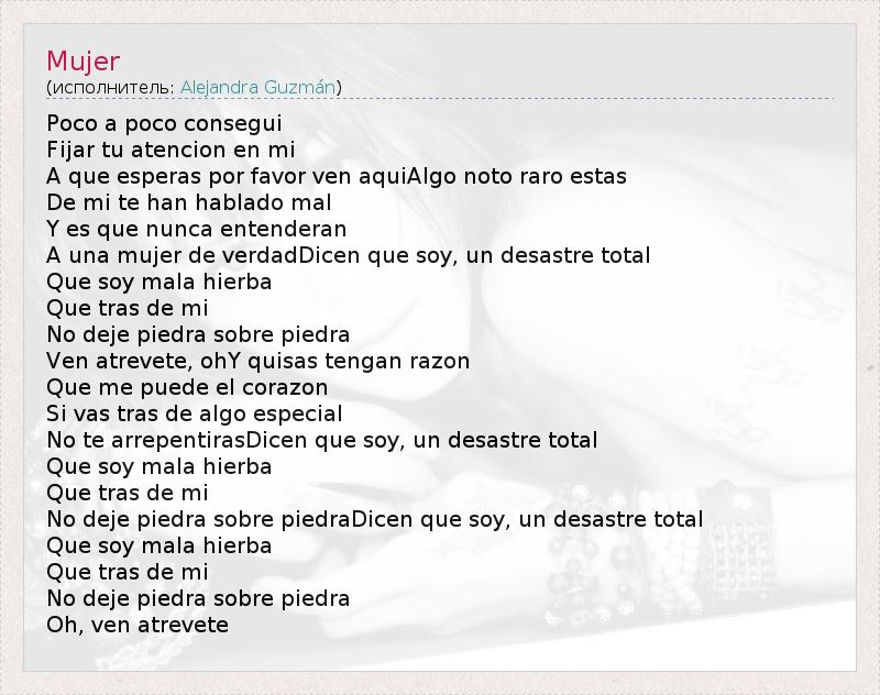 Poco a poco consegui Fijar tu atencion en mi A que esperas por favor ven aquiAlgo noto raro estas De mi te han hablado mal Y es que nunca entenderan A una mujer de verdadDicen que soy, un desastre total Que soy mala hierba Que tras de mi No deje piedra sobre piedra Ven atrevete, ohY quisas tengan razon Que me puede el corazon Si vas tras de algo especial No te arrepentirasDicen que soy, un desastre total Que soy mala hierba Que tras de mi No deje piedra sobre piedraDicen que soy, un desastre total Que soy mala hierba Que tras de mi No deje piedra sobre piedra Oh, ven atrevete
