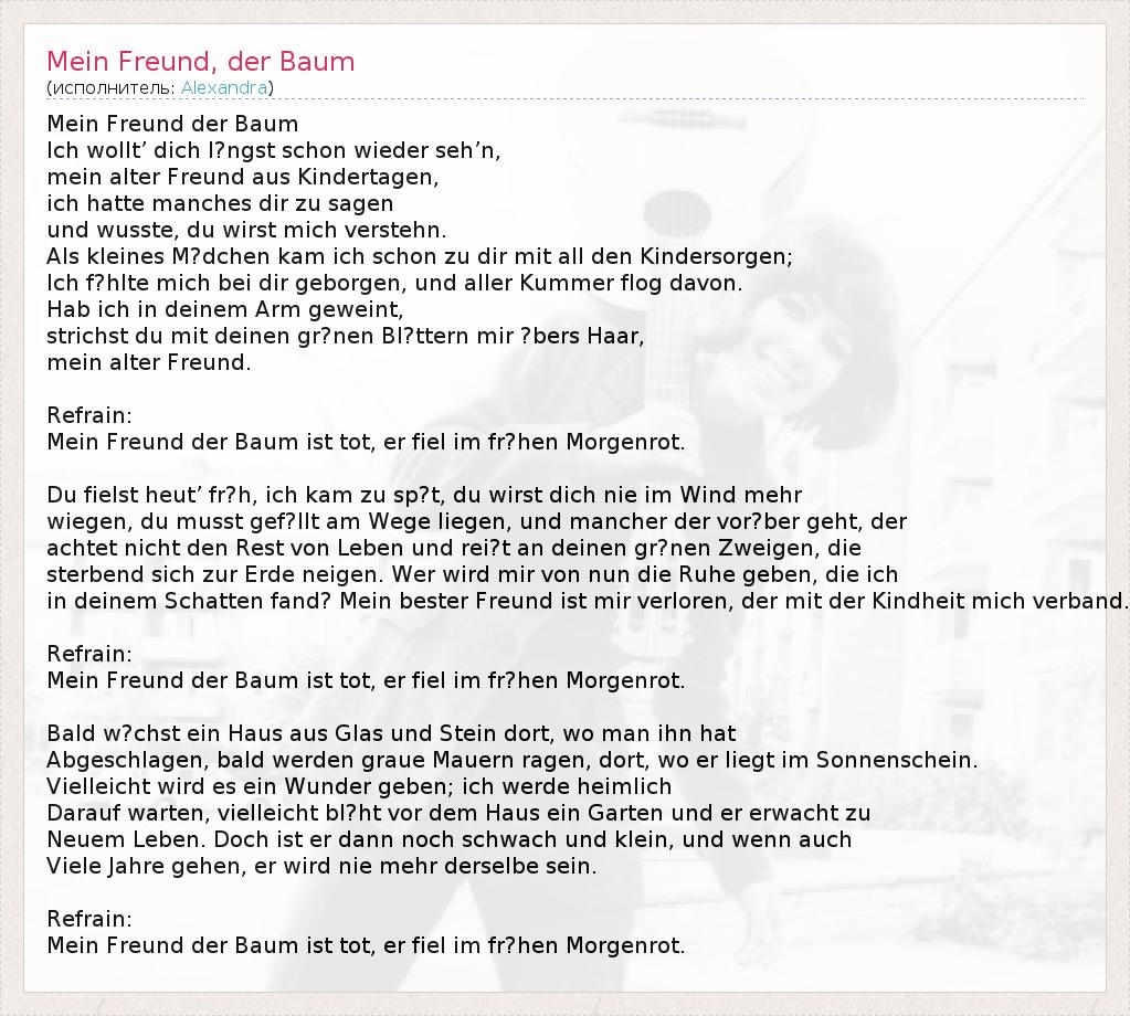 А как ты думаешь, о чем песня "Mein Freund, der Baum" ?