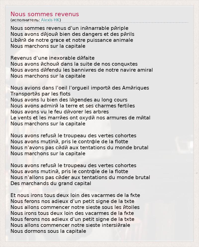 А как ты думаешь, о чем песня "Nous sommes revenus" ?