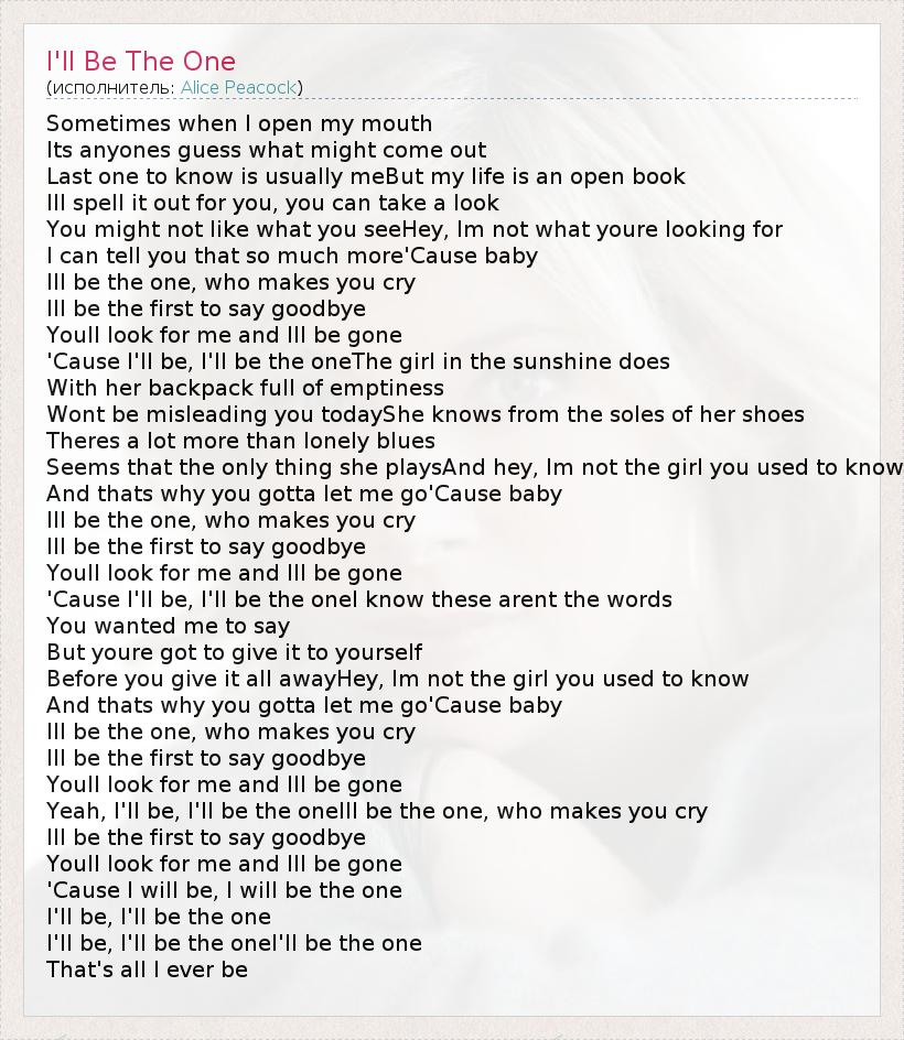 А как ты думаешь, о чем песня "I'll Be The One" ?