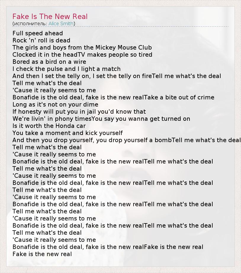 А как ты думаешь, о чем песня "Fake Is The New Real" ?