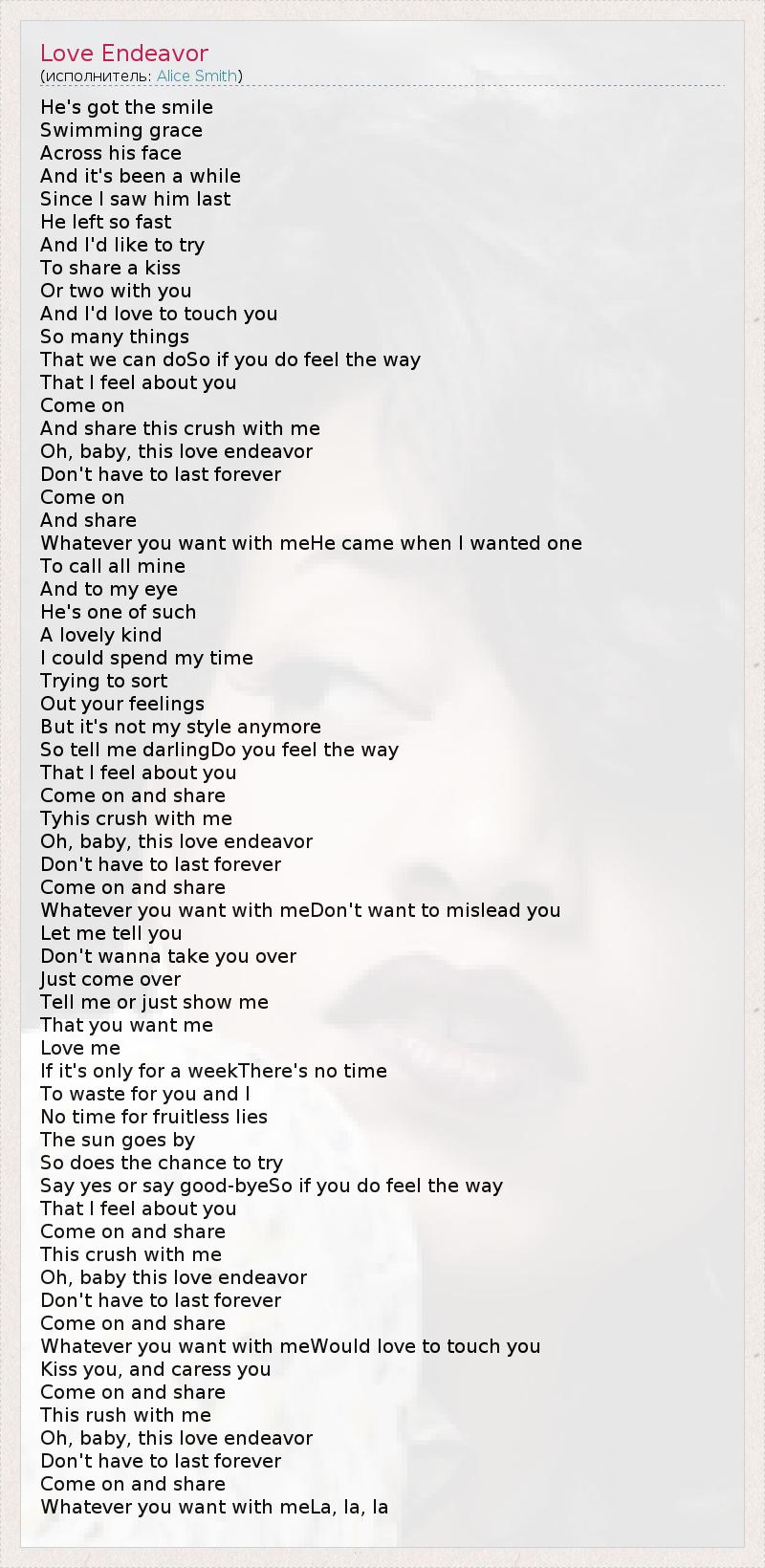 А как ты думаешь, о чем песня "Love Endeavor" ?