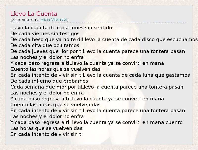 А как ты думаешь, о чем песня "Llevo La Cuenta" ?