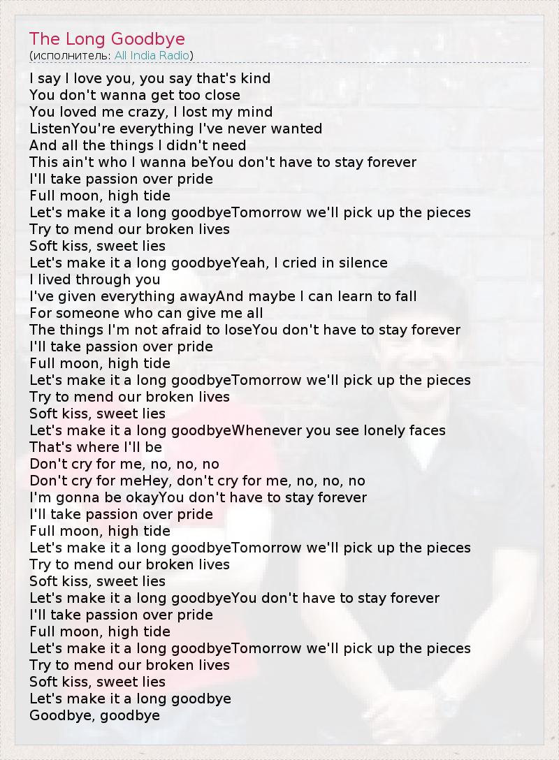 А как ты думаешь, о чем песня "The Long Goodbye" ?