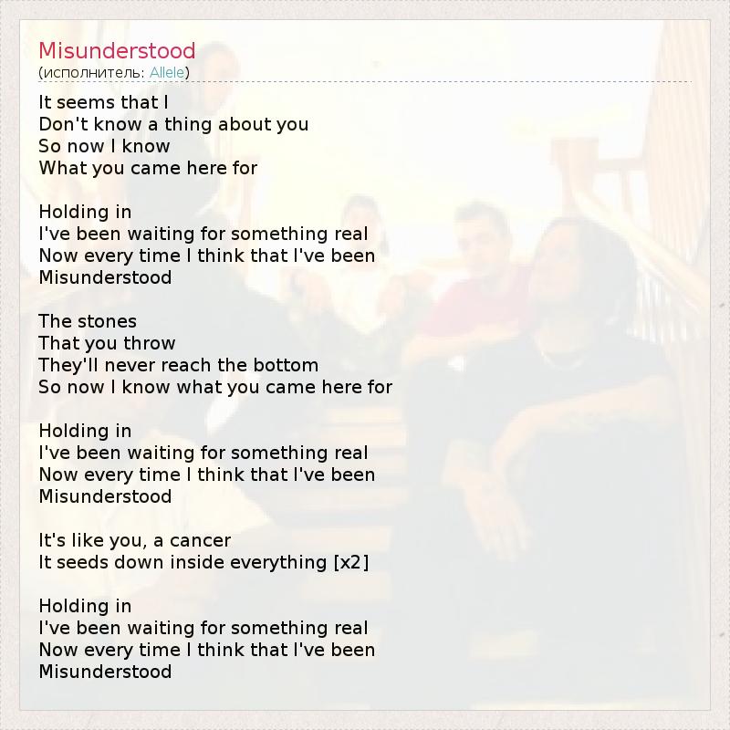 А как ты думаешь, о чем песня "Misunderstood" ?