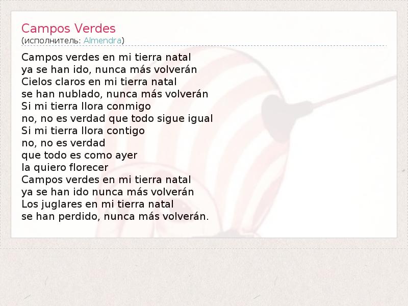 А как ты думаешь, о чем песня "Campos Verdes" ?