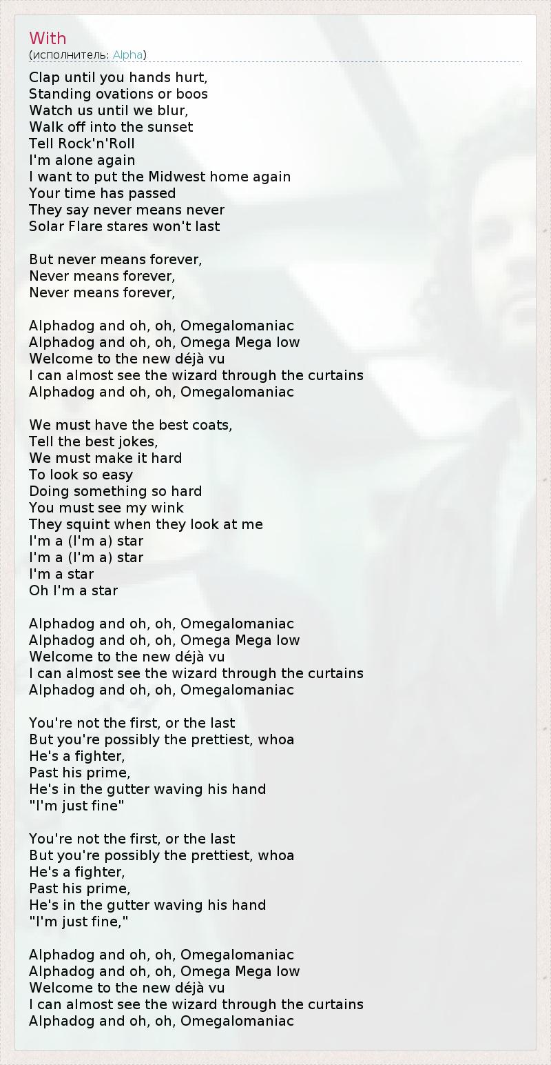 ** - также и игра частей слов: «Альфа-» и «Омега-» как первая и последняя буквы греческого алфавита. В некоторых интерпретациях Вожак стаи – это Барак Обама, а Больная манией величия – Хиллари Клинтон, действующий госсекретарь США.