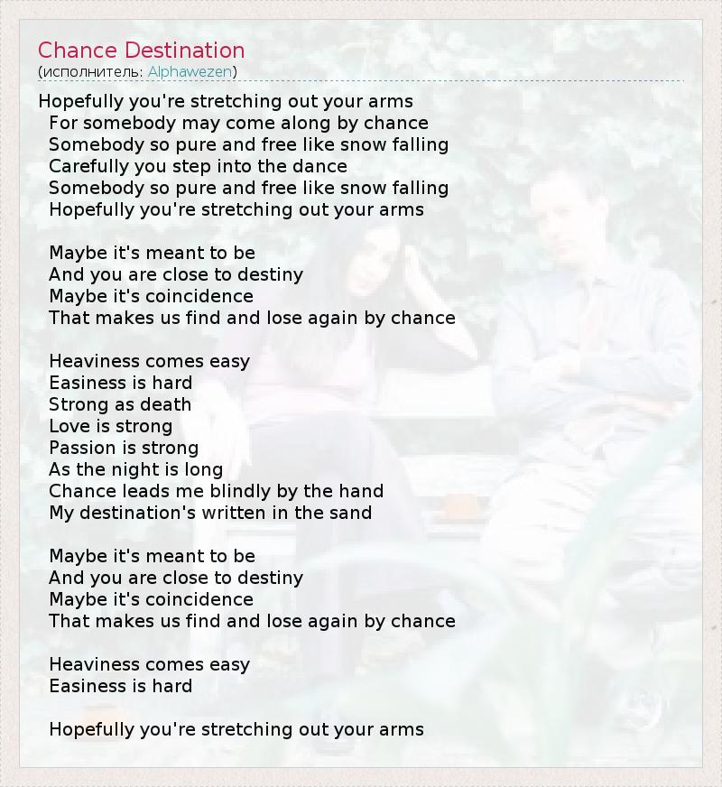 А как ты думаешь, о чем песня "Chance Destination" ?