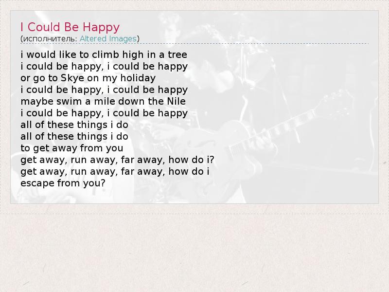 А как ты думаешь, о чем песня "I Could Be Happy" ?