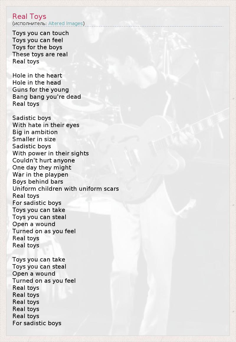 А как ты думаешь, о чем песня "Real Toys" ?