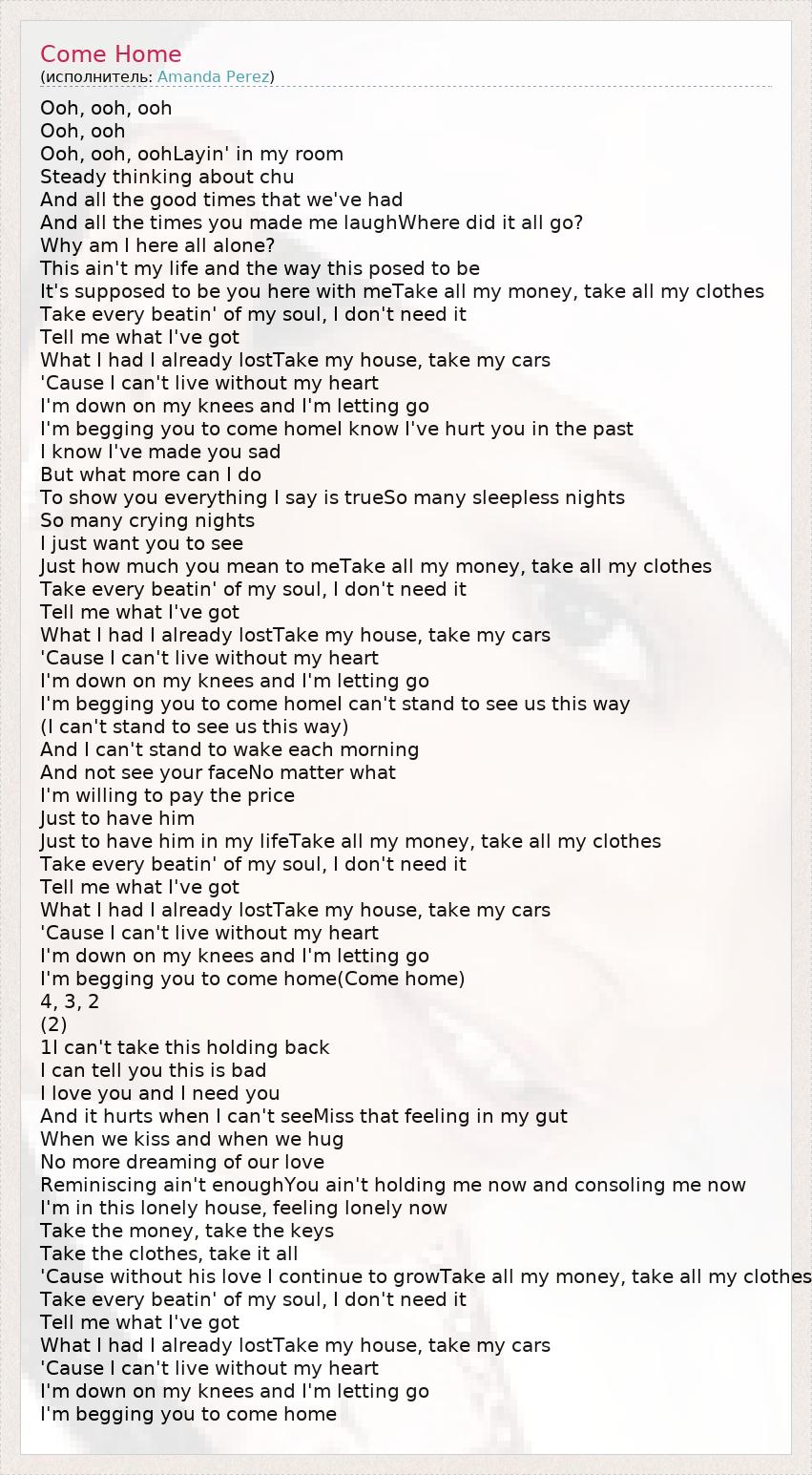 'Cause without his love I continue to growTake all my money, take all my clothes