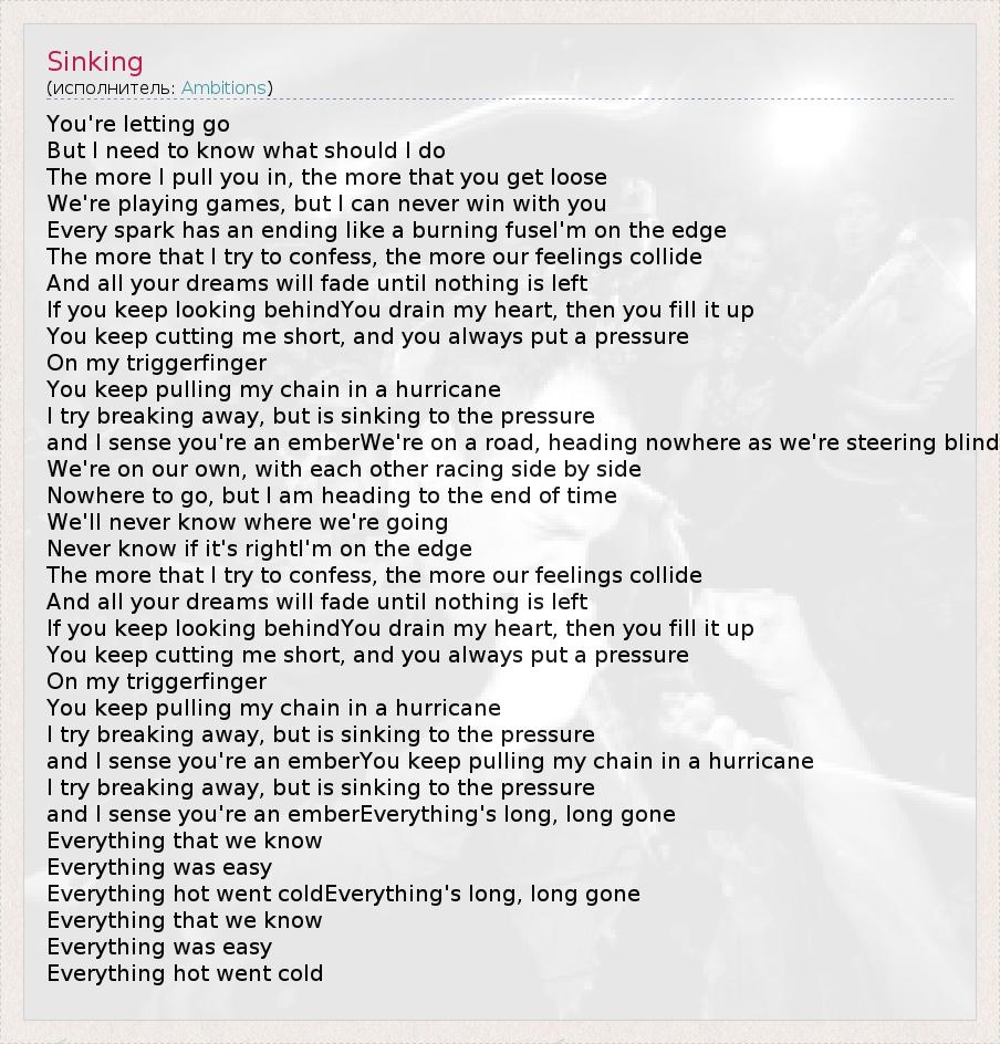 and I sense you're an emberYou keep pulling my chain in a hurricane