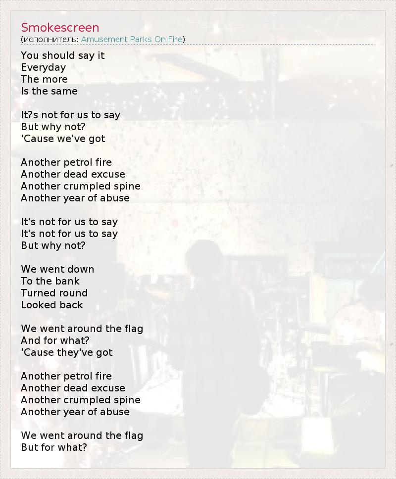 А как ты думаешь, о чем песня "Smokescreen" ?