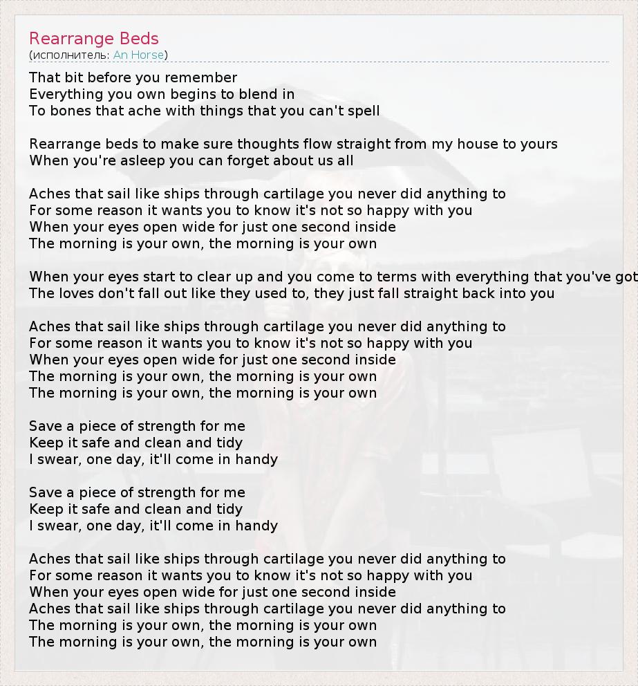 А как ты думаешь, о чем песня "Rearrange Beds" ?