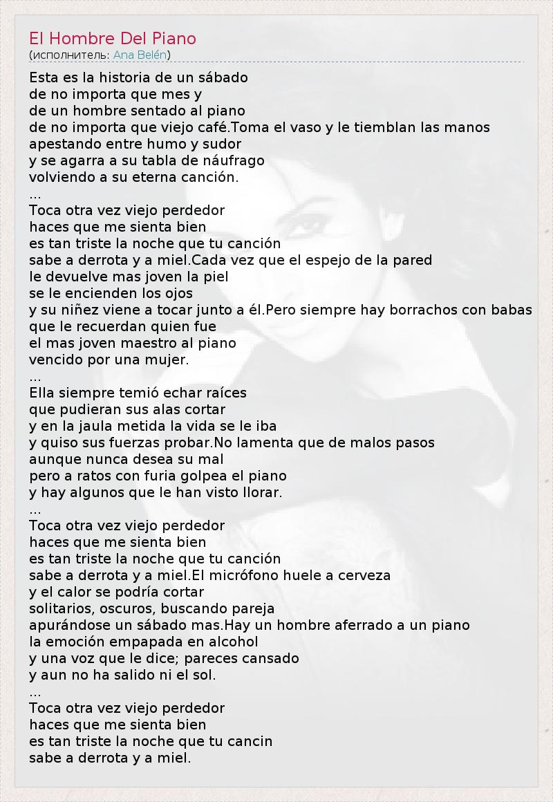 А как ты думаешь, о чем песня "El Hombre Del Piano" ?