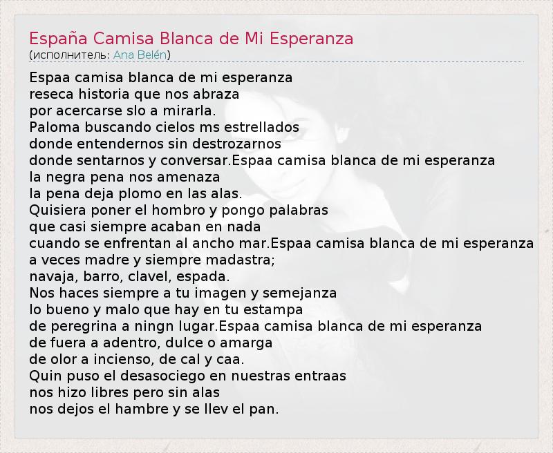 А как ты думаешь, о чем песня "España Camisa Blanca de Mi Esperanza" ?