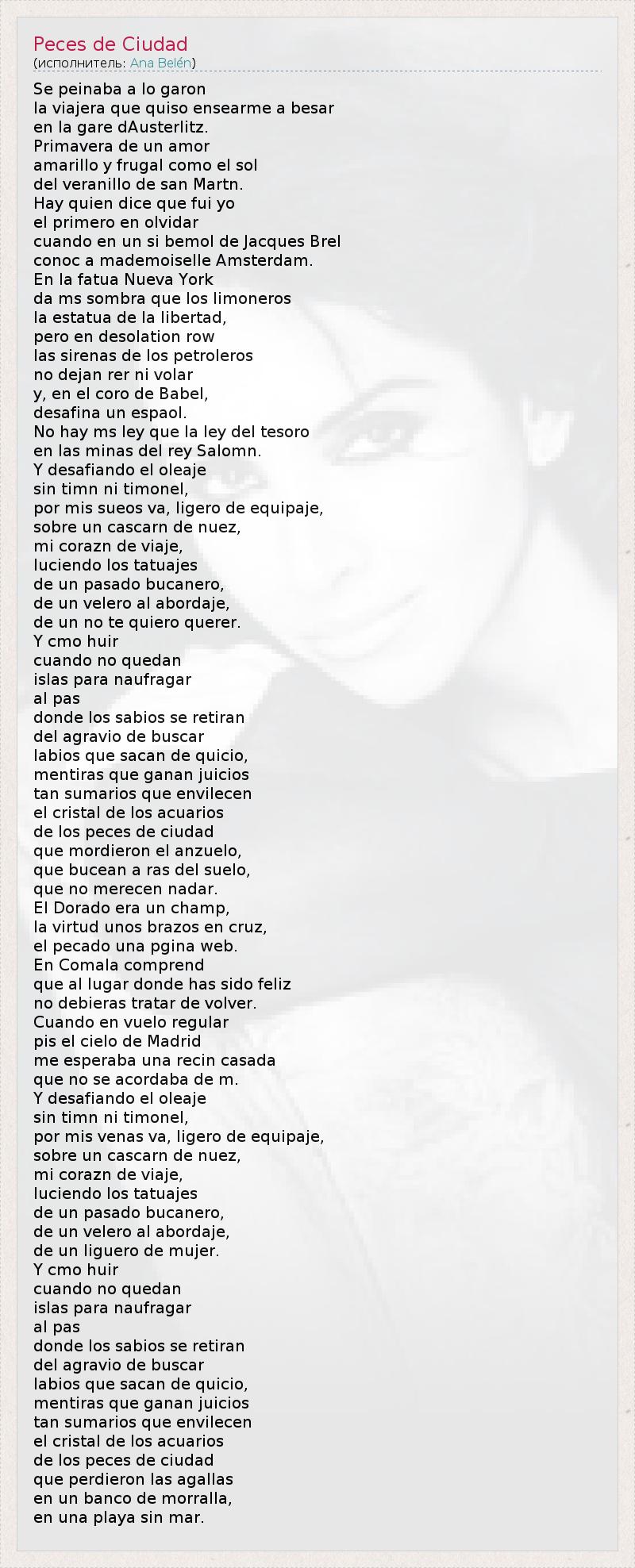 А как ты думаешь, о чем песня "Peces de Ciudad" ?