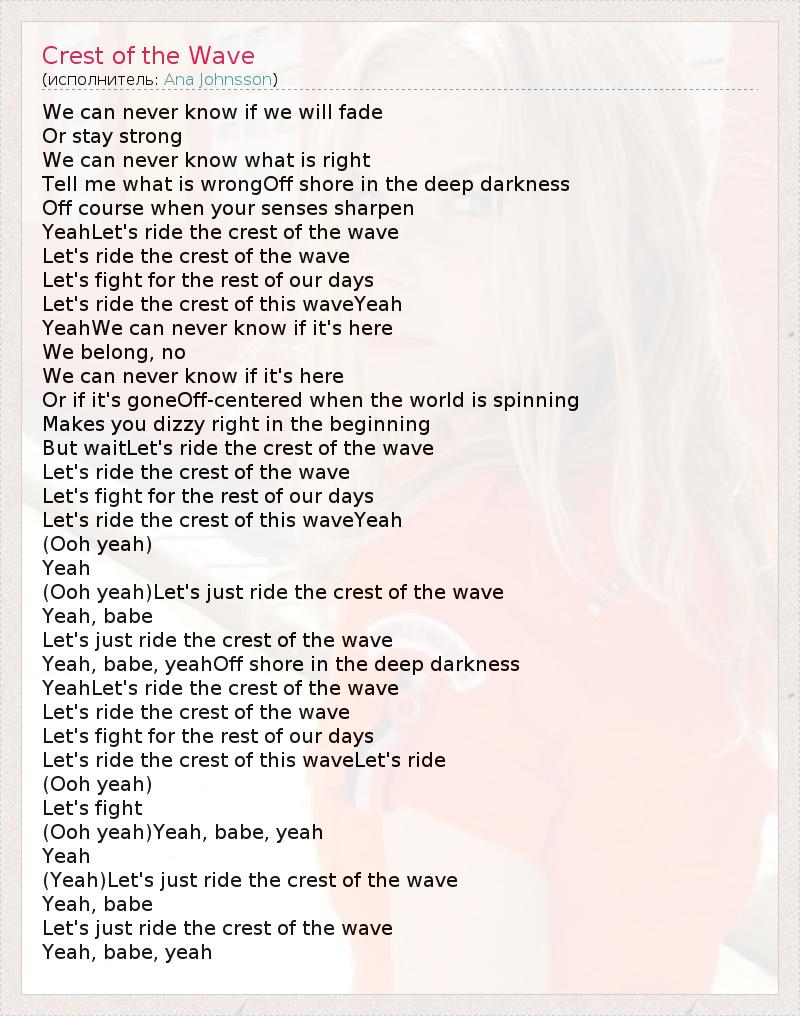А как ты думаешь, о чем песня "Crest of the Wave" ?