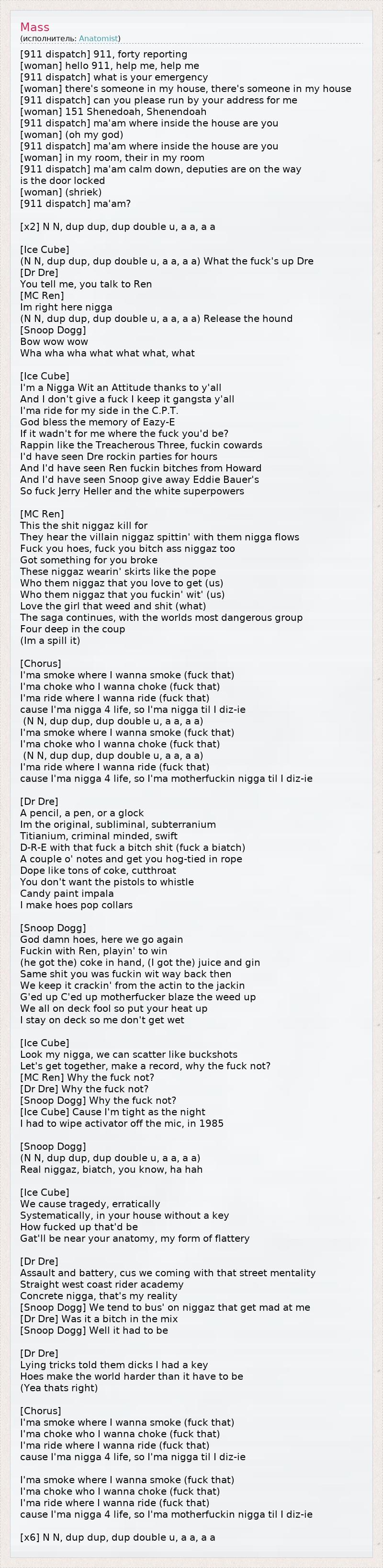 (N N, dup dup, dup double u, a a, a a) What the fuck's up Dre