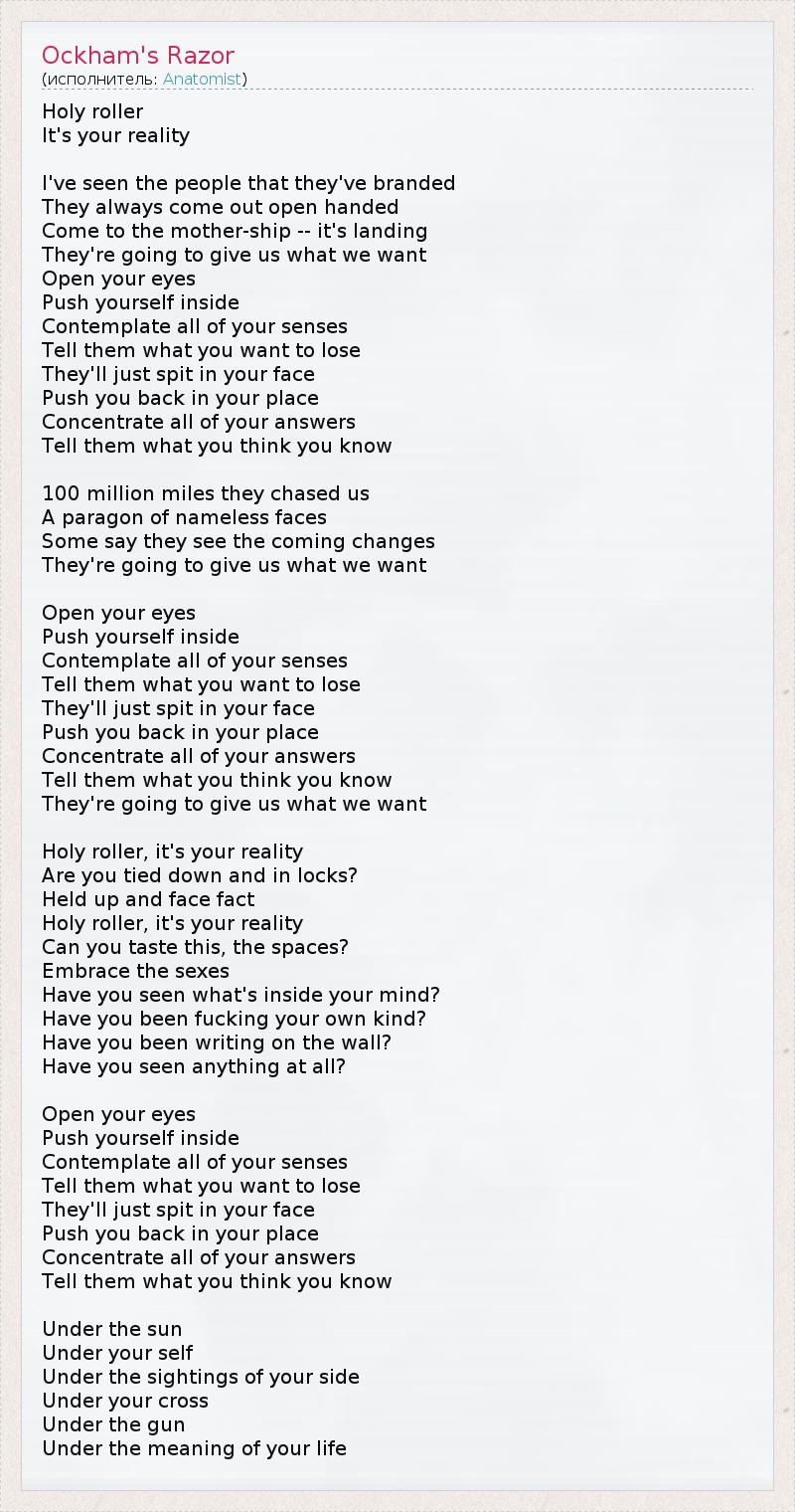 А как ты думаешь, о чем песня "Ockham's Razor" ?