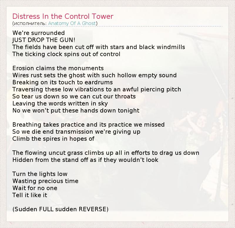 А как ты думаешь, о чем песня "Distress In the Control Tower" ?
