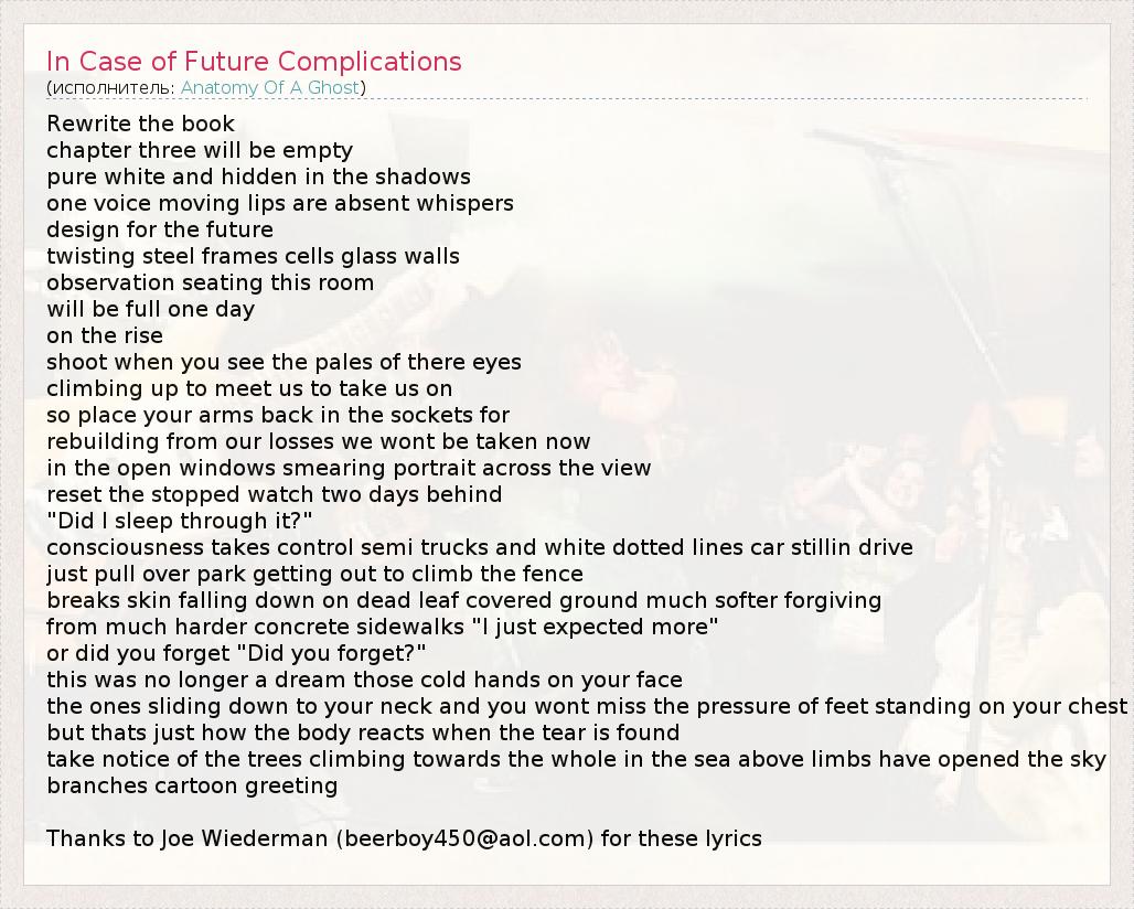 ГлавнаяИсполнителиAnatomy Of A GhostIn Case of Future Complications