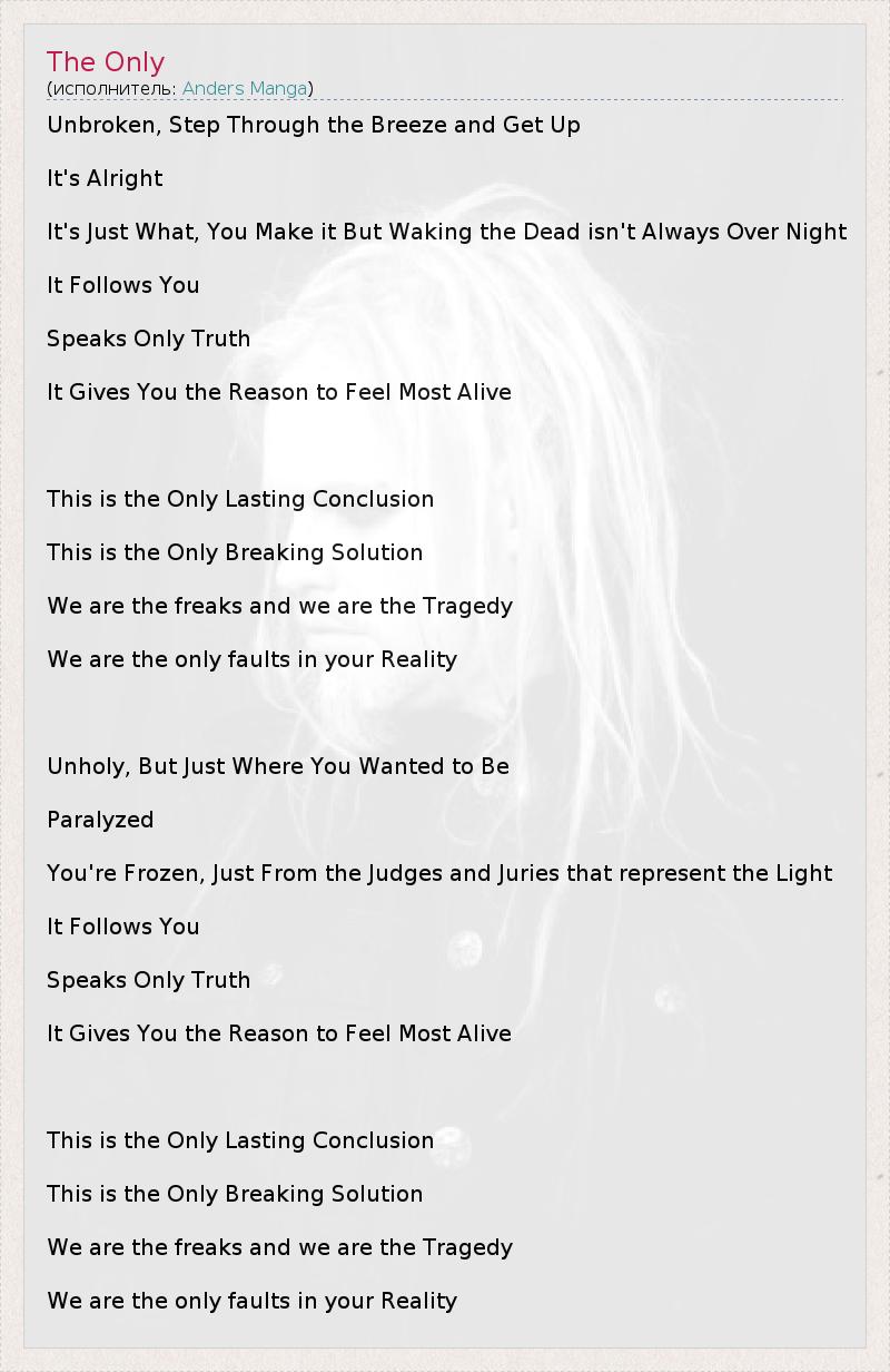 А как ты думаешь, о чем песня "The Only" ?