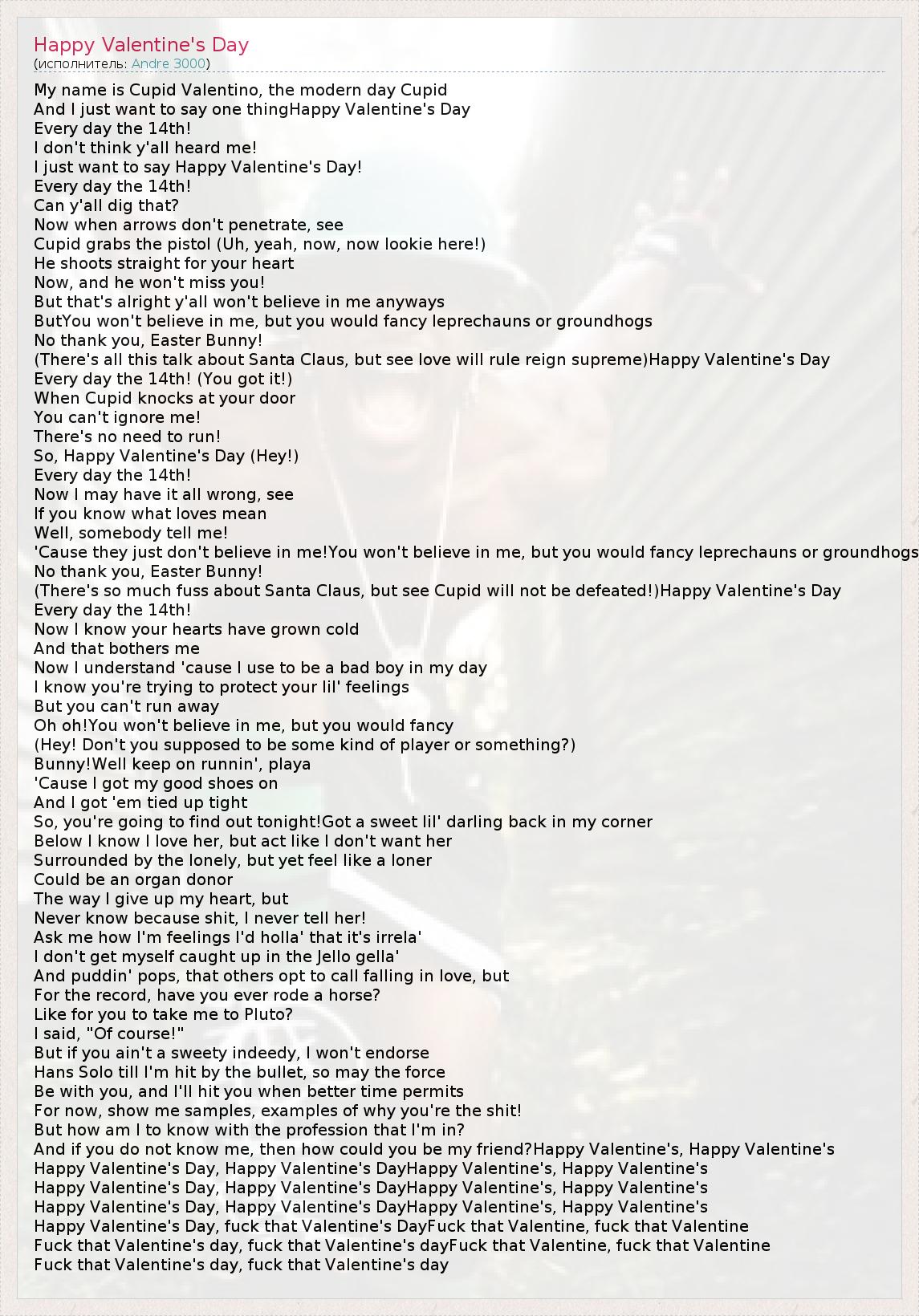 А как ты думаешь, о чем песня "Happy Valentine's Day" ?