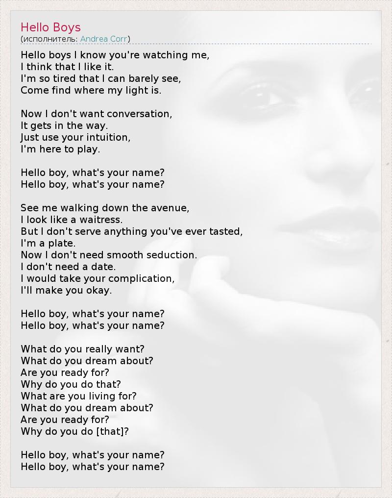 А как ты думаешь, о чем песня "Hello Boys" ?